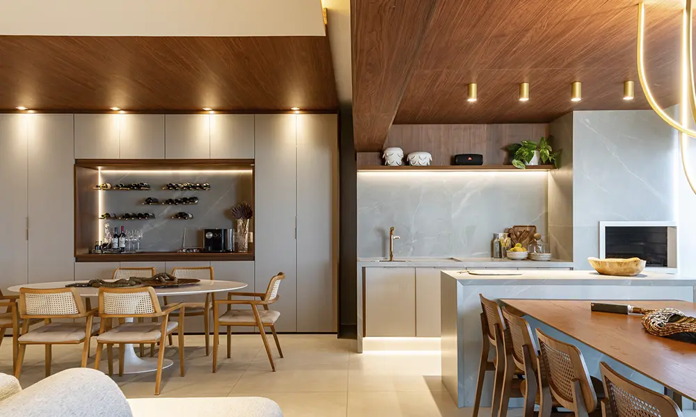 Ao percorrer suas páginas, é possível perceber como cada projeto nasce de um diálogo entre profissional e morador. Não se trata de reproduzir fórmulas prontas, mas de interpretar estilos de vida e traduzi-los em espaços. Assim surgem ambientes que inspiram: um living que reflete o prazer de receber amigos, uma adega projetada para valorizar momentos de celebração, uma cozinha que resgata memórias afetivas da família. Cada detalhe é pensado para transformar a rotina em experiência única e significativa.