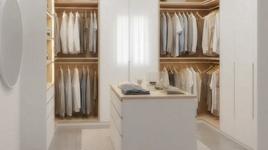 O closet clean se destaca pela neutralidade visual e sensação de ordem. Cores claras, poucos contrastes e superfícies contínuas criam ambiente leve, organizado e fácil de manter.